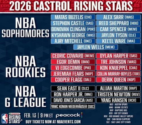 全明星新秀赛名单:杨瀚森入选G联赛队,克林根入选二年级队